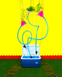 An ongoing sculptural experiment exploring the relationships between the food cycle, DIY technologies, and the environments which we build for ourselves. In these specific pieces, hydroponic and aquaponic systems were explored using upcycled and discarded items.